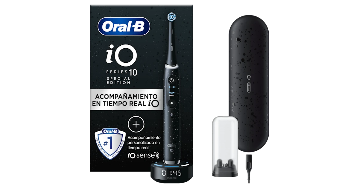 El Oral-B iO 9 no es un cepillo eléctrico común. Su tecnología magnética iO impulsa el cabezal redondo con una precisión que, según la marca, elimina hasta un 100% más de placa en solo una semana en comparación con un cepillo manual. Pero lo más impresionante es su capacidad para eliminar hasta un 300% más de placa a lo largo de la línea de las encías, una zona crítica donde suelen acumularse bacterias y residuos.
